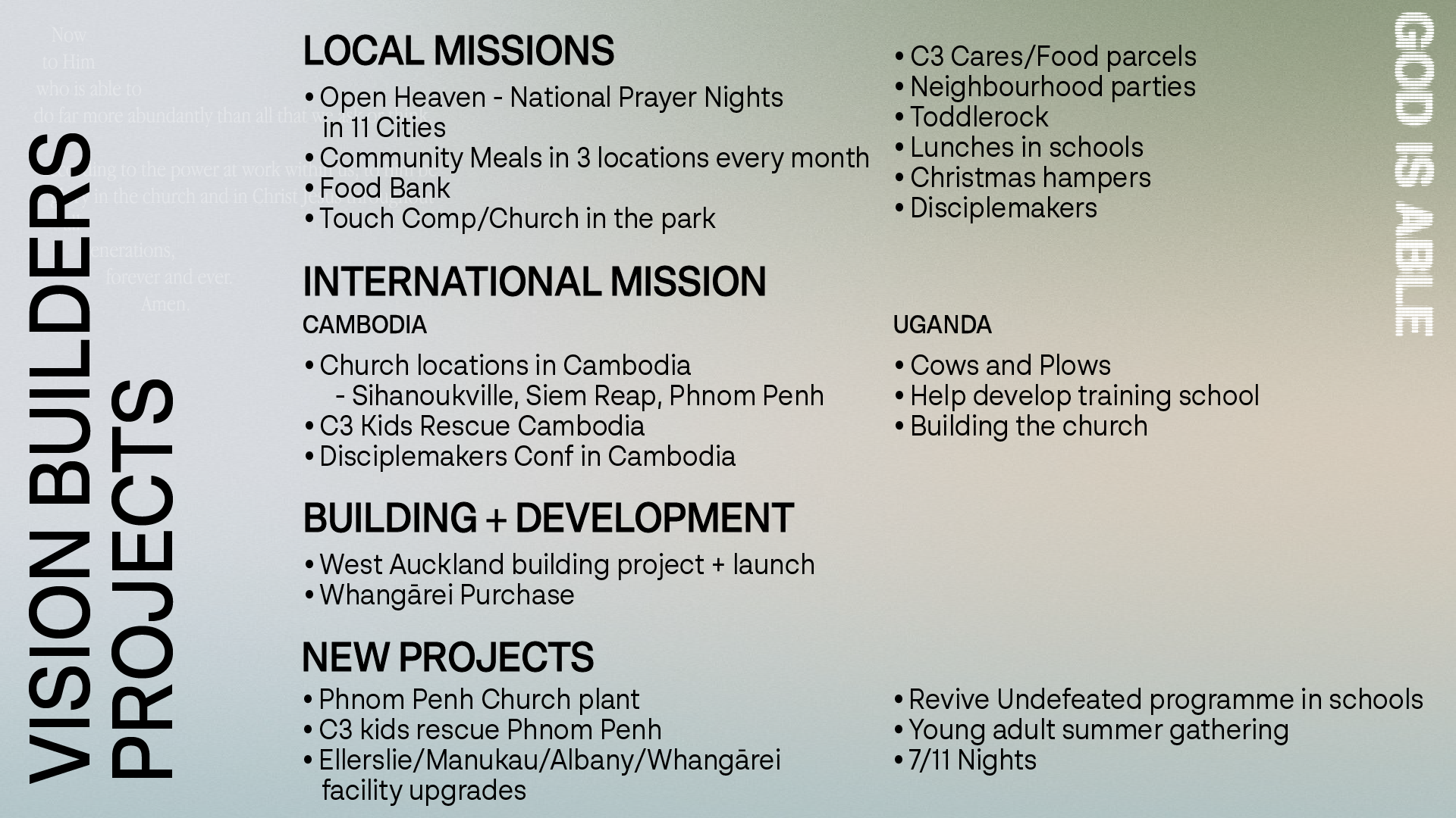 To find out more about the details of what Vision Builders allows us to do, Here are our projects for our 2025 campaign: